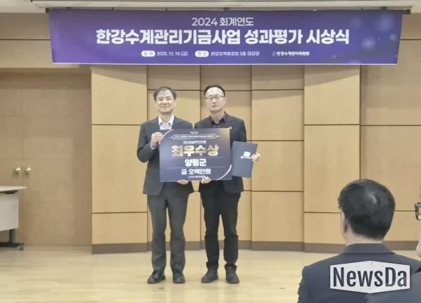 뉴스다 최광묵 기자 | 양평군은 지난 19일 한강유역환경청이 실시한 ‘2024년도 한강수계관리기금 성과평가’에서 주민지원사업 부문 최우수, 오염총량관리사업 부문 장려를 수상했다고 밝혔다.