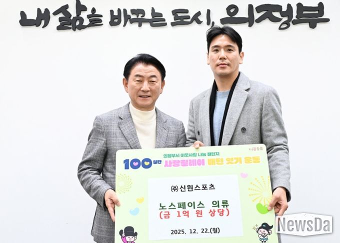 뉴스다 최광묵 기자 | 의정부시는 12월 22일 ㈜신원스포츠 노스페이스 양주점(LF스퀘어몰)과 포천송우점이 관내 아동복지시설에 아동용 의류 및 가방 등 1억 원 상당의 물품을 기부했다고 밝혔다.