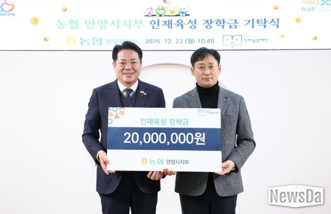 뉴스다 최광묵 기자 | 안양시 인재육성재단이 지난 22일 농협 안양시지부로부터 인재육성을 위한 장학금 2천만 원을 기탁받았다고 23일 밝혔다.