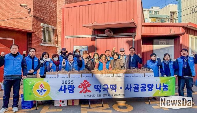 뉴스다 최광묵 기자 | 평택시 송북동 바르게살기위원회는 지난 22일 설 명절을 앞두고 송북동 내 취약계층과 경로당 어르신들에게 떡국떡과 사골곰탕 나눔 행사를 진행했다.