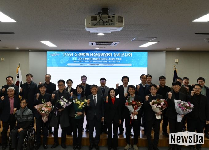 뉴스다 최광묵 기자 | 전북특별자치도 농생명혁신성장위원회는 23일 전북바이오융합산업진흥원에서 도내 농생명혁신기관과 대학 관계자 등 100여 명이 참석한 가운데 ‘2025년 농생명혁신성장위원회 성과공유회’를 개최했다.