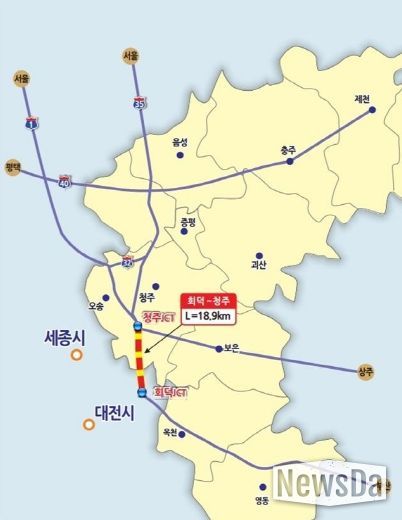 이재덕 충북도 도로과장은 “증평~호법, 회덕~청주 고속도로 확장사업이 예비타당성조사 대상사업으로 신규 선정된 것은 사업추진 당위성과 도민들의 염원이 반영될 결과”라며 “본격적인 사업추진을 위해서 예비타당성조사가 통과될 수 있도록 적극 노력하겠다.”고 밝혔다.