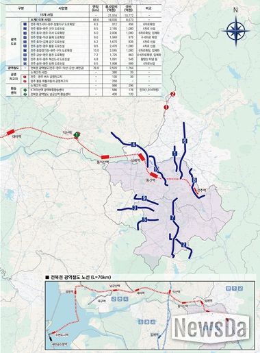 이와 함께 11월 22일 새만금~전주 고속도로(55km)가 개통되며 새만금에서 전주까지의 통행 시간이 기존 76분에서 33분으로 43분, 약 57% 단축됐다. 이는 국가 간선도로망 동서 3축(새만금~포항)의 서측 관문을 여는 핵심 성과로, 전북의 광역 접근성을 크게 개선했다. 또한 무주~대구 고속도로(84km)가 예비타당성조사 대상사업으로 선정되면서 동서 3축 완성을 위한 토대를 닦았다.