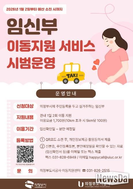 뉴스다 최광묵 기자 | 의정부시가 임신부의 이동 불편을 해소하고 안전한 외출을 지원하기 위해 2026년 1월 2일부터 ‘임신부 이동지원 서비스’를 시범운영한다.