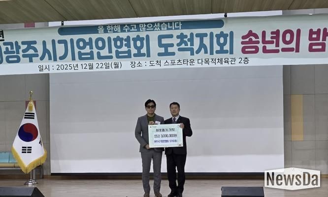 뉴스다 최광묵 기자 | (사)광주시기업인협회 도척지회는 지난 22일 도척스포츠타운에서 송년회를 개최하고 연말연시를 맞아 도척면에 이웃돕기 성금 300만 원을 기탁했다.