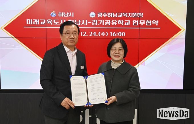뉴스다 최광묵 기자 | 하남시는 24일 시청 집무실에서 경기도광주하남교육지원청과 지역 교육 협력을 강화하기 위한 '미래교육도시 하남시–경기공유학교 업무협약'을 체결했다고 밝혔다. 이날 협약식에는 이현재 하남시장을 비롯해 오성애 광주하남교육지원청 교육장 등 양 기관 관계자들이 참석했다.