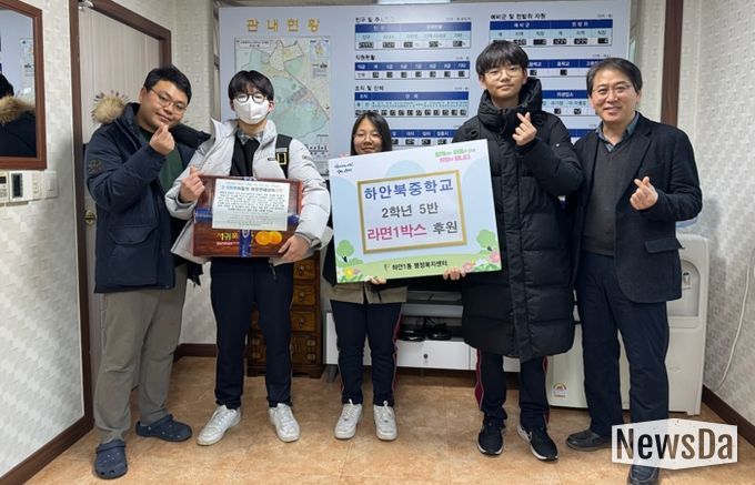 함기훈 동장은 “학생들의 자발적인 정성이 연말을 맞아 지역 내 어려운 이웃들에게 큰 힘이 될 것”이라며 “청소년들의 나눔 정신이 하안1동 전체에 따뜻한 바람을 불러일으킬 것”이라고 전했다.