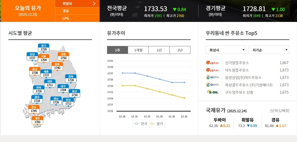 ▲화성시 휘발류 제일 싼 주유소 1667원 신기알뜰주유소