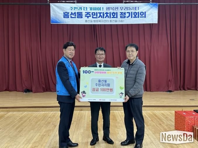 흥선동 주민자치위원회는 주민화합과 공동체 활성화를 위해 다양한 활동을 펼쳐왔으며, 이번에도 100일간 사랑릴레이를 통해 지역사회에 따뜻한 나눔을 실천했다. 기탁된 성금은 관내 취약계층 지원에 사용될 예정이다.