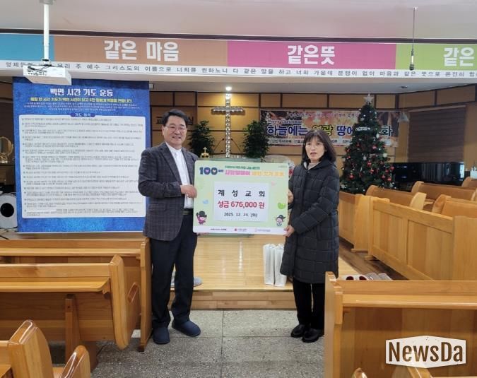 뉴스다 최광묵 기자 | 의정부시 자금동주민센터는 12월 24일 계성교회가 어려운 이웃을 위한 성금 67만6천 원을 기탁하며 ‘100일간 사랑릴레이 배턴 잇기’에 동참했다고 밝혔다.