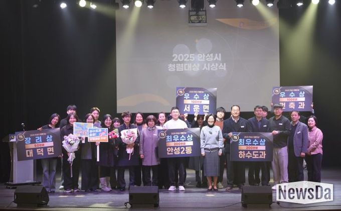 뉴스다 최광묵 기자 | 안성시는 지난 24일 평생학습관에서 ‘2025년 제12회 안성시 청렴대상 시상식’을 개최하고, 한 해 동안 청렴행정 실천에 기여한 우수부서 시상과 함께 더 공정하고 투명한 공직문화 조성을 위한 실천의지를 다지는 시간을 가졌다.