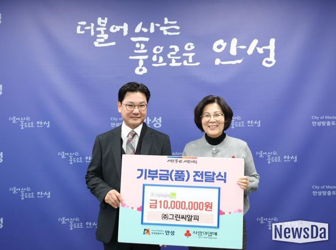 뉴스다 최광묵 기자 | 안성시는 지난 12월 24일, ㈜그린씨알피로부터 1,000만 원 기부금을 전달받았다고 밝혔다.