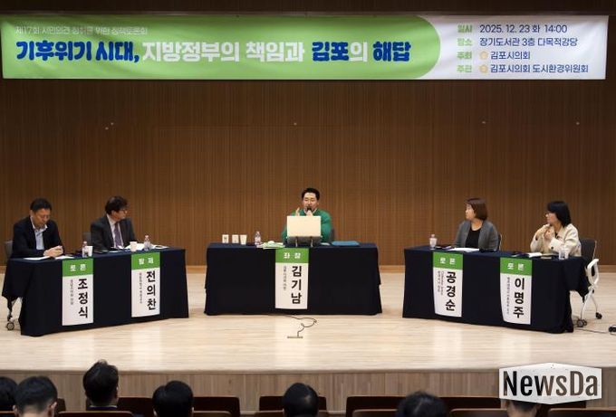 뉴스다 최광묵 기자 | 김포시의회 도시환경위원회는 12월 23일 장기도서관에서 ‘기후위기 시대, 지방정부의 책임과 김포의 해답’을 주제로 제17회 정책토론회를 열었다.
