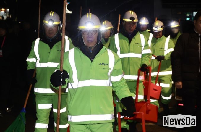 뉴스다 최광묵 기자 | 김민석 국무총리는 12월 26일 6시 30분경, 서울특별시 관악구 서원동 환경공무관 업무공간을 방문해 직접 거리를 청소하고 담소를 나누며 격려하는 시간을 가졌다.