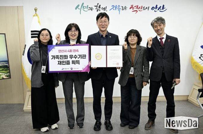 뉴스다 최광묵 기자 | 안산시는 올해 성평등가족부가 선정하는 ‘가족친화 우수기관 재인증’을 4회 연속 획득했다고 29일 밝혔다.