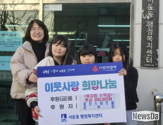 뉴스다 최광묵 기자 | 수원시 권선구 서둔동에 위치한 웅진스마트올 클래스는 지난 24일 이웃을 위해 플리마켓 수익금 300,000원을 서둔동행정복지센터에 기부했다.