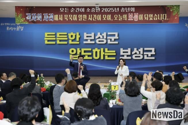 뉴스다 최광묵 기자 | 보성군은 지난 24일 군청 4층 대회의실에서 한 해 동안 군정 발전을 위해 헌신한 공직자들을 격려하고 소통과 화합을 도모하기 위해 ‘모든 순간이 소중한 2025년 송년회’를 개최했다고 밝혔다.