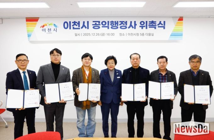 뉴스다 최광묵 기자 | 이천시는 복잡한 행정 절차로 어려움을 겪는 시민들을 돕기 위해 공익 행정사를 위촉하고 지난 26일, 이천시청 5층 다올실에서 ‘제1기 공익행정사 위촉식’을 개최했다.