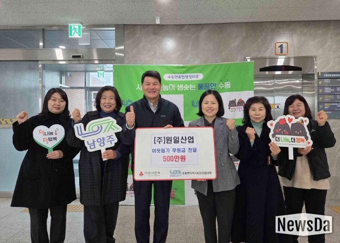 뉴스다 최광묵 기자 | 남양주시는 29일 수동면 소재 ㈜원일산업에서 지역 내 어려운 이웃을 위한 후원금 500만 원을 경기사회복지공동모금회를 통해 수동면 지역사회보장협의체에 지정 기탁했다고 밝혔다.