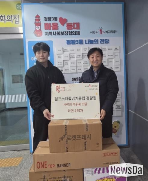 뉴스다 최광묵 기자 | 점프스타줄넘기클럽 정왕점은 지난 12월 29일 정왕3동 지역사회보장협의체를 찾아 저소득 결식 우려 가구를 위한 라면 255개를 전달했다. 이번 후원은 학원생들이 어려운 이웃을 돕기 위해 직접 라면을 모아 마련한 것으로, 나눔의 의미를 더했다.