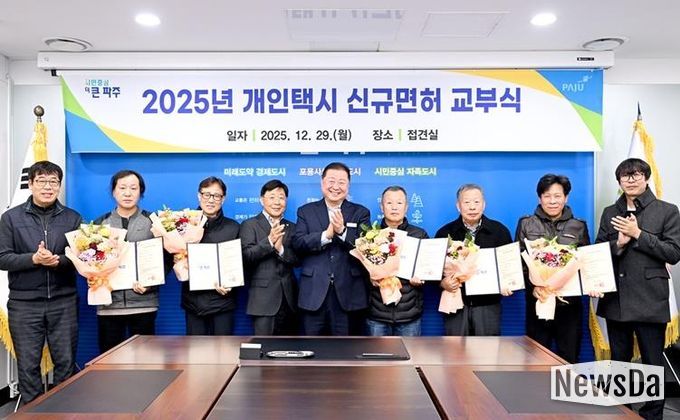 뉴스다 최광묵 기자 | 파주시는 지난 29일 '2025년도 개인택시 신규면허 교부식’을 개최했다고 밝혔다.