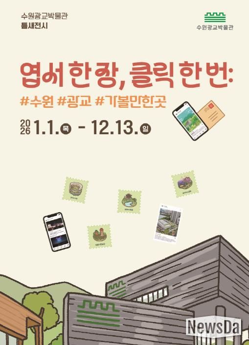 뉴스다 최광묵 기자 | 수원광교박물관이 2026년 1월 1일부터 12월 13일까지 틈새전시 ‘엽서 한 장, 클릭 한 번: #수원 #광교 #가볼 만한 곳’을 연다.