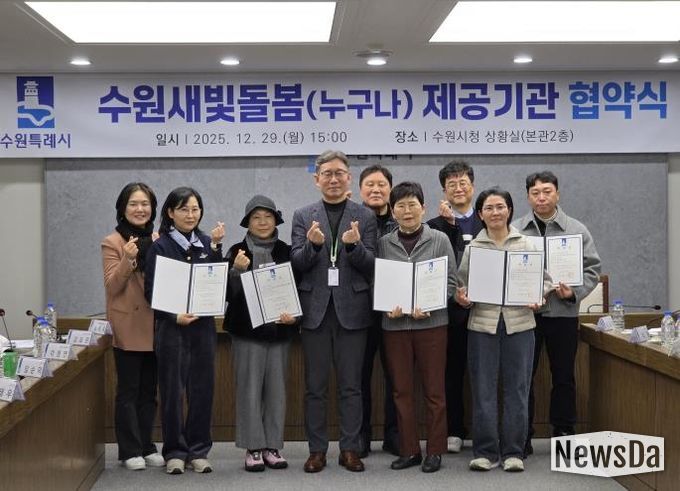 뉴스다 최광묵 기자 | 수원특례시이 29일 시청 상황실에서 ‘수원새빛돌봄(누구나) 서비스 제공기관 재협약 협약식’을 열고, 서비스 제공기관들과 재협약을 체결했다.