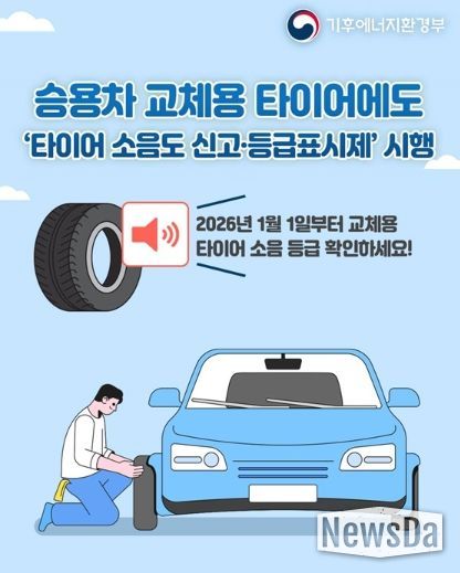 뉴스다 최광묵 기자 | 승용차 교체용 타이어에도 '타이어 소음도 신고·등급표시제' 시행