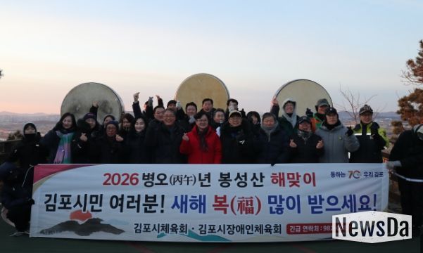 뉴스다 최광묵 기자 | 김포시와 김포시체육회·김포시장애인체육회가 지난 1일 하성면 봉성산에서 ‘2026 봉성산 해맞이 행사’를 개최하고, 시민들과 함께 병오년 붉은 말의 해의 시작을 알렸다. 이번 행사는 새해 첫 일출을 맞이하며 시민 화합과 지역 공동체의 안녕을 기원하기 위해 마련됐다.
