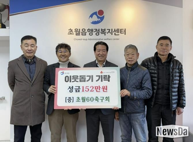 뉴스다 최광묵 기자 | 초월60축구회는 지난달 31일 이웃돕기 성금 152만 원을 경기 사회복지공동모금회를 통해 광주시 초월읍에 기탁했다.