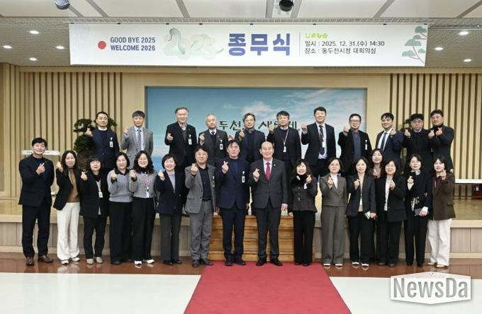 뉴스다 최광묵 기자 | 동두천시는 지난 12월 31일 시청 대회의실에서 ‘2025년 종무식’을 개최했다. 이날 행사에는 표창 수상자와 공무원 등 200여 명이 참석했다.