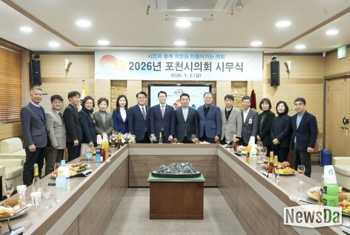뉴스다 최광묵 기자 | 포천시의회는 2일, 의회 2층 의원회의실에서 2026년 병오년(丙午年) 새해를 맞는 시무식을 개최하고 본격적인 의정활동에 돌입했다.
