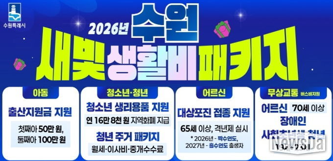 수원시 관계자는 “시민이 체감할 수 있는 사업으로 수원 새빛 생활비 패키지를 구성했다”며 “시민의 생활비 부담을 줄이는 데 도움이 되길 바란다”고 말했다.