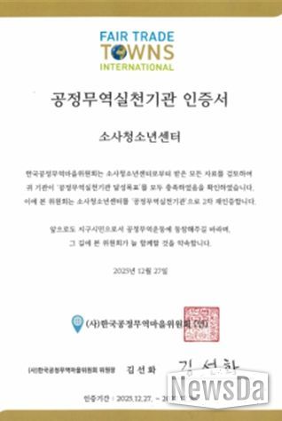 뉴스다 최광묵 기자 | 부천여성청소년재단이 운영하는 소사청소년센터는 지난달 27일 사단법인 한국공정무역마을위원회로부터 ‘공정무역 실천기관’ 2차 재인증을 획득했다.