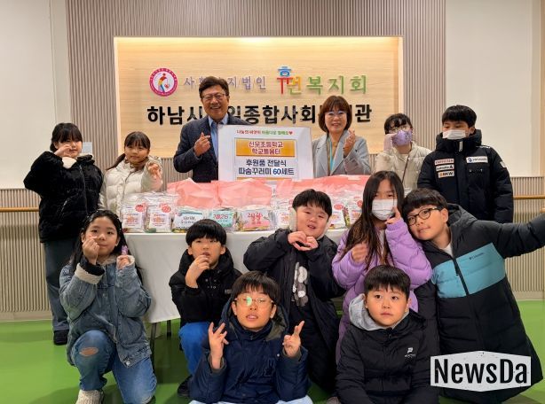 뉴스다 최광묵 기자 | 신우초등학교 학교돌봄터(센터장 서정애)는 지난 12월 29일 하남시감일종합사회복지관(사회복지법인 휴먼복지회 운영)에 따숨 꾸러미 60세트를 전달했다.