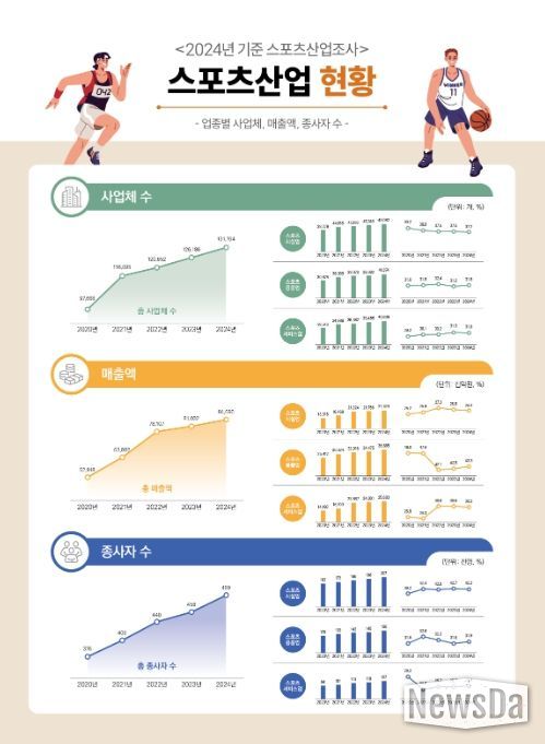 뉴스다 최광묵 기자 | 문화체육관광부는 1월 8일, 2024년 기준 ‘스포츠산업조사’의 주요 결과를 발표했다.