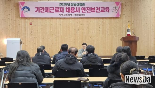 뉴스다 최광묵 기자 | 양평군은 지난 7일 양평 쉬자파크 산림교육센터에서 산림 현장에서 근무하는 기간제근로자 12명을 대상으로 안전보건교육을 실시했다.