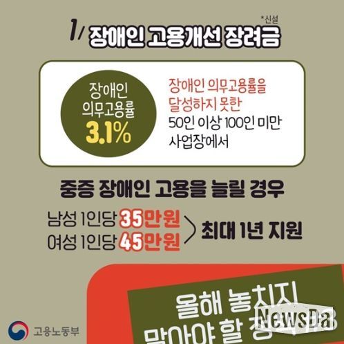 뉴스다 최광묵 기자 | 1. 장애인 고용개선 장려금(*신설)