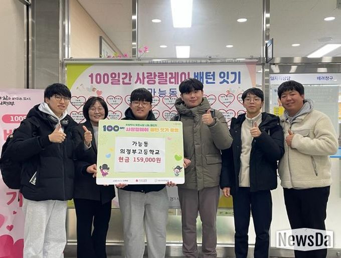 뉴스다 최광묵 기자 | 의정부시 가능동주민센터는 1월 7일 의정부고등학교 3학년 3반 졸업 예정 학생들이 교내 축제 활동을 통해 마련한 성금 15만9천 원을 관내 취약계층 지원을 위해 기부했다고 밝혔다.
