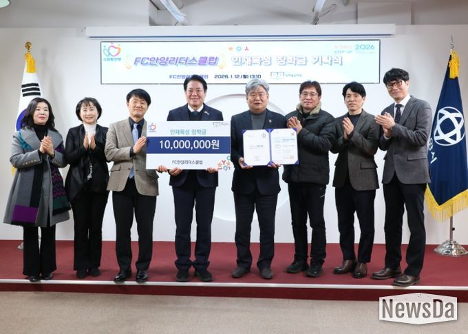 뉴스다 최광묵 기자 | 안양시 인재육성재단은 지난 12일 안양시 기반의 시민 참여형 후원 조직인 ‘FC안양리더스클럽(회장 김인환)’으로부터 미래 인재 양성 장학금 1,000만 원을 전달받았다고 13일 밝혔다.