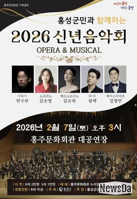 뉴스다 최광묵 기자 | 홍성군 홍주문화회관은 내달 7일 오후 3시에 ‘홍성군민과 함께하는 2026 신년음악회’를 개최한다고 밝혔다. 이번 음악회는 병오년 새해를 맞아 오페라와 뮤지컬 넘버를 아우르는 다채로운 프로그램으로 관객들과 만날 예정이다.