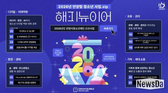 뉴스다 최광묵 기자 | 안양시청소년재단은 2026년을 맞아 ‘청소년이 주도하는 변화의 물결, 모두가 함께하는 지속 가능한 미래’라는 비전 아래 10개 소속 기관을 주축으로 신규사업을 본격 추진한다.