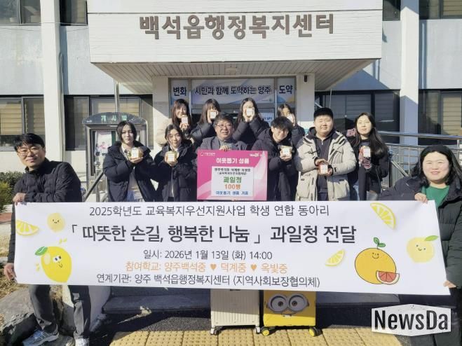 뉴스다 최광묵 기자 | 양주시 백석중학교, 덕계중학교, 옥빛중학교가 함께하는 교육복지우선지원사업 학생 연합 동아리가 지역사회를 위한 따뜻한 나눔을 실천했다.