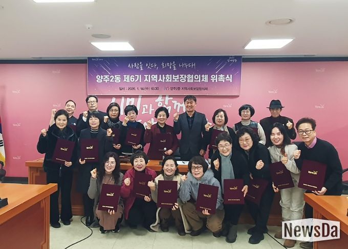 뉴스다 최광묵 기자 | 양주시 양주2동 행정복지센터는 14일 오전 양주2동 행정복지센터에서 지역 내 복지 사각지대 발굴과 맞춤형 복지 서비스 제공을 위한 ‘제6기 양주2동 지역사회보장협의체 위촉식’을 개최했다.