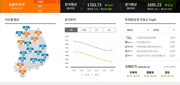 ▲화성시 휘발류 제일 싼 주유소 1595원 오일필드(주)남양지점