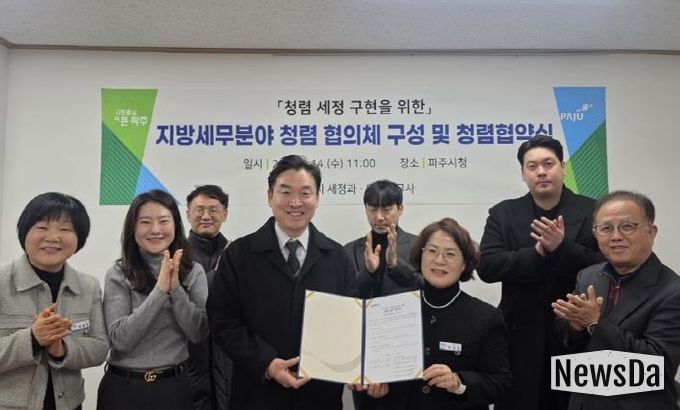 뉴스다 최광묵 기자 | 파주시는 지난 14일 파주지역세무사회(마을세무사)와 함께 청렴 문화의 정착과 확산을 위한 민관 청렴협의체를 구성하고, 청렴 실천을 위한 협약을 체결했다고 밝혔다.