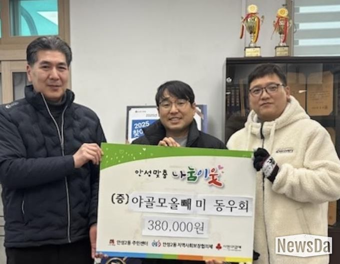 뉴스다 최광묵 기자 | 안성시 안성2동은 야간 골프 모임 ‘나이트 오울스’가 관내 어려운 이웃을 위해 사용해 달라며 성금 38만 원을 기탁했다고 밝혔다.