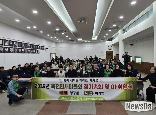 뉴스다 최광묵 기자 | 양평군 옥천면 새마을회는 지난 14일 옥천면사무소 회의실에서 새마을지도자와 새마을부녀회 회원, 기관·단체장 등 50여 명이 참석한 가운데 2026년도 새마을회 정기총회 및 이·취임식을 개최했다.