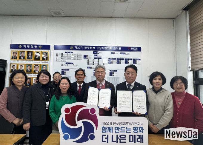 뉴스다 최광묵 기자 | 고양시자원봉사센터는 지난 14일 민주평화통일자문회의 고양지역협의회와 ‘지역 내 평화통일 공감대 확산과 사회공헌 문화 활성화’를 위한 업무협약을 체결했다.