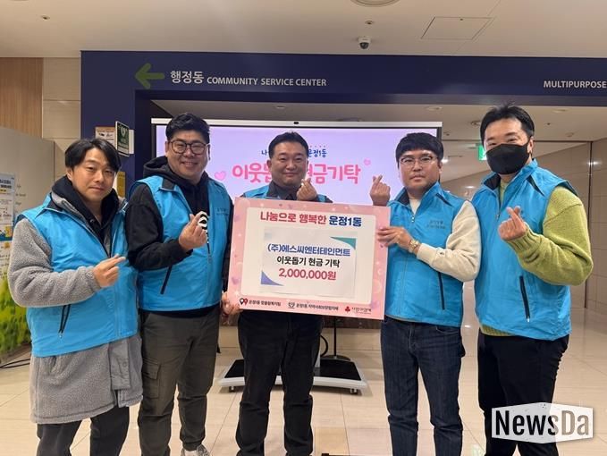 이번 기탁은 지난 2024년 성금 전달에 이어 다시 한번 이루어진 것으로, 일회성 지원에 그치지 않고 지역사회에 꾸준히 관심을 기울여 온 ㈜에스씨엔터테인먼트의 진심 어린 나눔 철학이 담겨 있다.